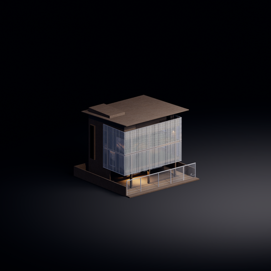 This project features a custom-designed metal mesh façade that acts as both a solar filter and privacy screen, softening the interaction between the interior and the street. The perforated skin wraps around the structure like a veil — allowing diffused light to animate the spaces throughout the day while maintaining a sense of enclosure. The design balances transparency and solidity, creating a dynamic visual rhythm that shifts with changing light and perspective.